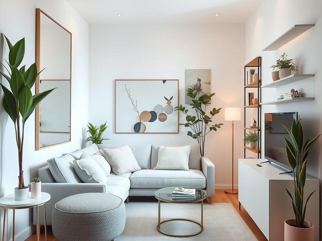 Regularnie zadbaj o odpowiednie oświetlenie. Umieść lampy w strategicznych miejscach, aby stworzyć efekt głębi oraz rozświetlić przestrzeń. Lustra powinny być kluczowym elementem dekoracyjnym – umieść je naprzeciwko okna, aby odbijały naturalne światło i dodawały wrażenia głębi.